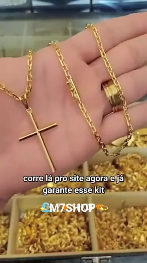 💥PROMOÇÃO Corrente + Pingente Cruz Palito Banhados a ouro 18k Cordão Masculina💥🚀 #Supercopa2025 #voltaasaulas #bondedasoncinhas #aliança #💫M7SHOP💫