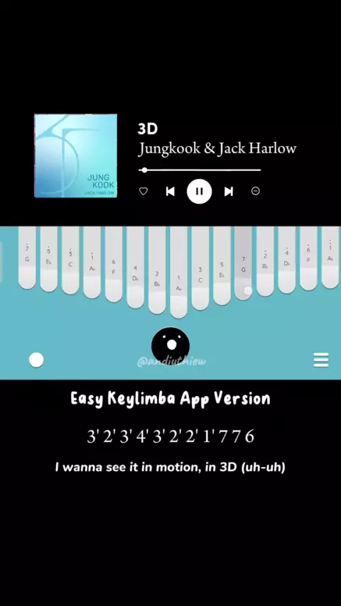 teruntuk kalian terutama Kpopers yang suka lagu ini boleh coba 3D - Jungkook & Jack Harlow (Easy Keylimba App Tutorial) with sound by: Uthie#keylimbatutorial#kalimbacover#jungkook#3D##kpop#spotify