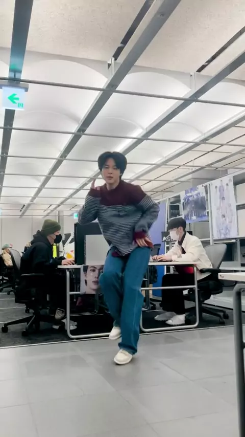 "🚨 Jiminie aparece no prédio de escritórios da Hive! 🐥 Dance poderosamente... Saia rápido. Desculpe (Apresse-se 💨) #JiminDanceTime