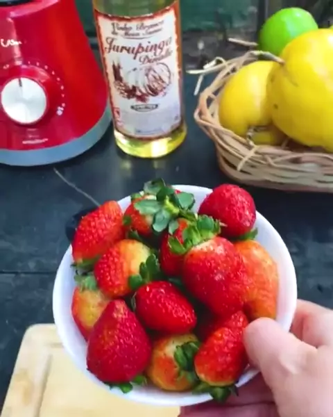 Batida JuruLove Receita: ✅ 01 bandeja de morango; ✅ 01 copo de Jurupinga; ✅ 1/2 limão; ✅ 02 doses de leite condensado (quantidade a gosto); ✅ Polpa de maracujá para decorar. #obrasilqueeuquero #Eleições2022 #RapidoComoTremBala #maracujá #caipirinha