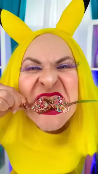Pikachu Come Doce nos Olhos-! 👀🍬 Doce ou Assustador- #horadolanche #mordidasousadas #doce #pikachu #divertido