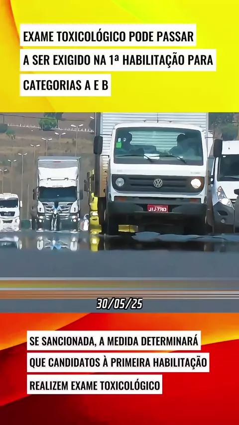 Se sancionada, a medida determinará que candidatos à primeira habilitação nas categorias A ou B realizem exame toxicológico #ultimasnoticias #hotspotskwai