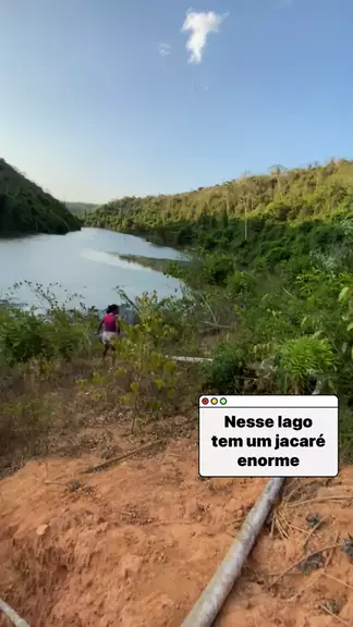 Nesse lago tem um jacaré enorme #lago #coragem #afazendanokwai #kuaiviral