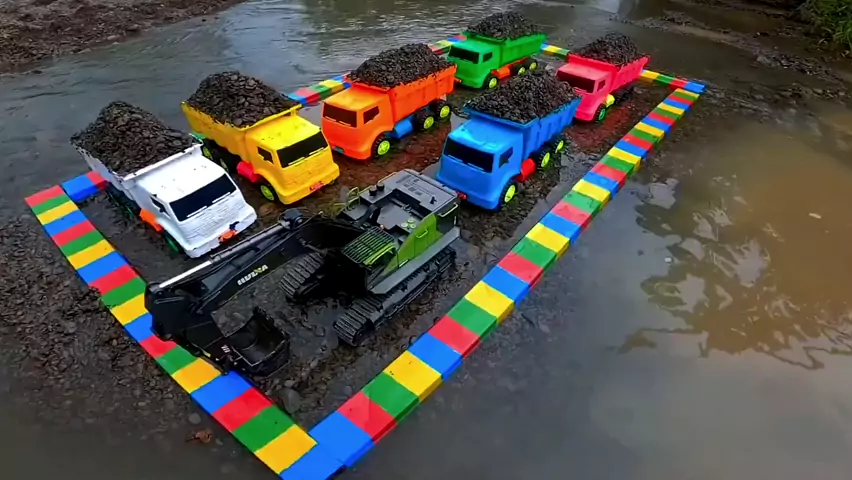 6 truk mainan dan ekskavator besar, lihat mainan apa yang ada di dalam ember, gali pasir # Anak-anak truk rekayasa mainan video # animasi kendaraan teknik