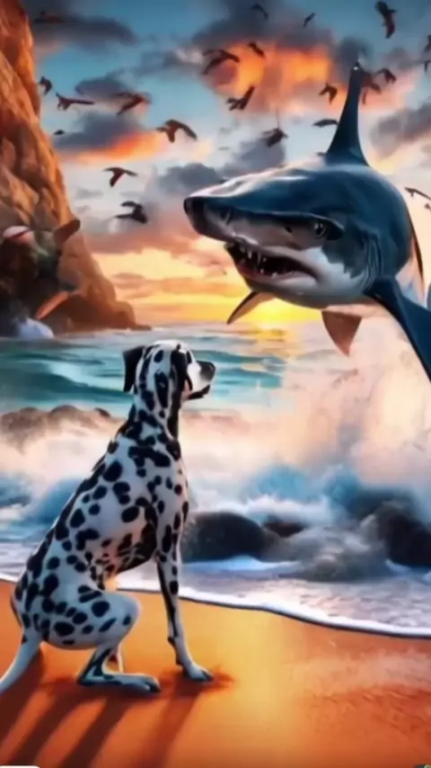 đ„ FUSĂO TUBARĂO E UM CACHORRO #viral #ai #fyp #Fyy #fusao