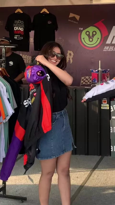 Keseruan UG IDW saat mencoba Jaket Nascar terbaru Racertees @Indonesia Drag Wars #racertees #umbrellagirl #spg