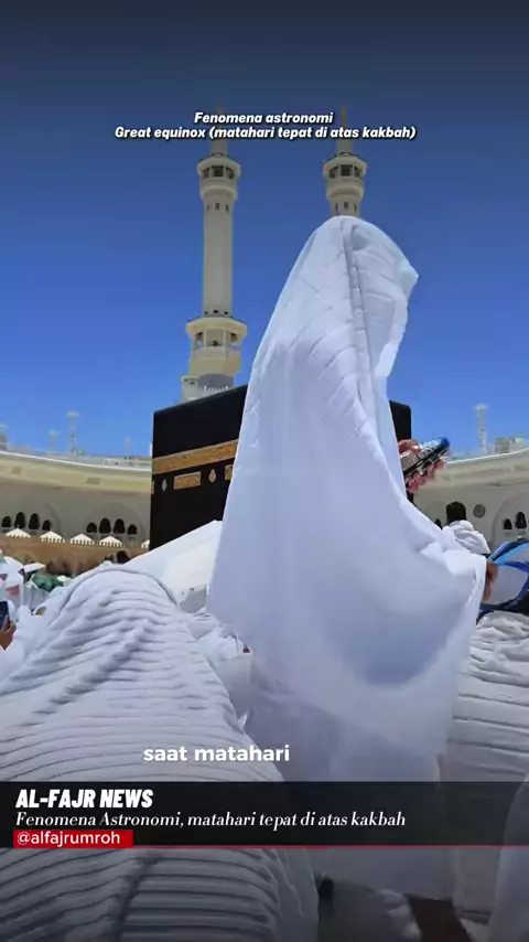 Fenomena “istiwa al-a’zham” atau “great equinox”, dan terjadi dua kali dalam setahun. Saat matahari mencapai zenitnya di atas Ka’bah, tidak ada bayangan yang terlihat karena sinar matahari jatuh tegak lurus ke permukaan bumi di titik tersebut. . . .#makkah#kakbah#madinah#umroh