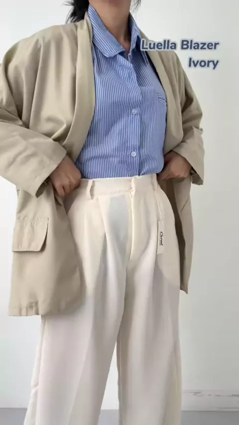 Replying to @dxcl Done! perpaduan warnanya cocok😍 co di keranjang kuning!!#kemeja#kemejaoversize#racunbelanja#racun#racunshop#blazer#blazeroutfit#kulot#kulothighwaist
