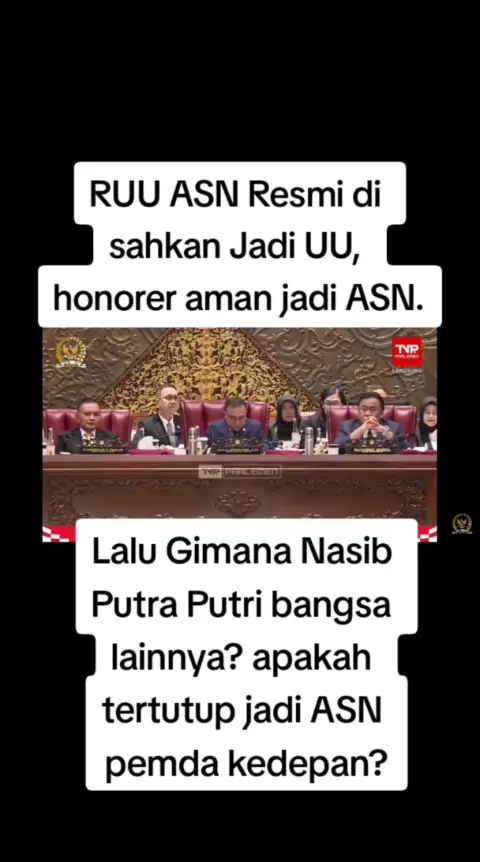 Resmi RUU ASN disahkan jadi UU. Jika RUU mengangkat honorer jadi ASN. Lalu muncul pertanyaan, Bagaimana nasib Pelamar umum, putra putri terbaik bangsa lainnya , apakah tertutup menjadi ASN? wajib kita tunggu, semoga RUU ASN juga adil bagi putra putri Indonesia atau semua warga negara, karna ASN adalah hak semua warga negara. #ruuasn2024 #ruuasnsah #ruuasn #honorer #pppk #pppkparuhwaktu #pppkpenuhwaktu #cpns