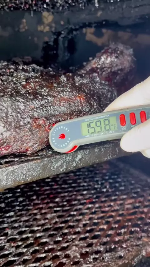TEMP CHECK #tempcheck #brisketcheck #bbqlover #foodtok #cominginhotchallenge #smokedmeat