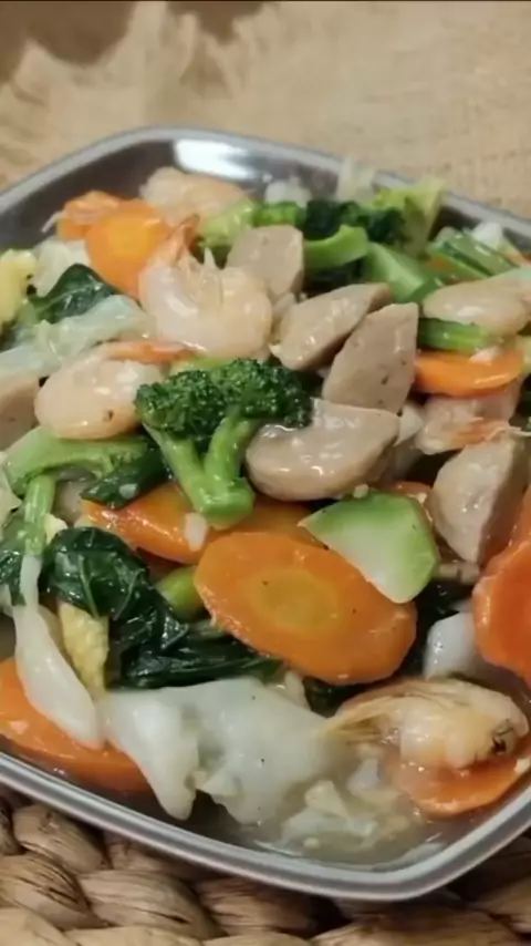 Resep Capcay Sayur : Bahan sayuran : 2 buah wortel 5 buah putren (jagung muda) 1 buah brokoli 3 lembar kol 5 lembar sawi hijau 1 batang daun bawang Bahan protein hewani : 10 butir bakso 50 gram udang (ukuran kecil) Bahan lainnya : 2 siung bawang putih 100 ml air 1/2 sdt garam 1/4 sdt kaldu bubuk 1/2 sdt merica bubuk 1 sdm saus tiram 1 sdm tepung maizena (campur dengan 150 ml air)#capcay#capcaysayur#capcaykuah#bismillah#resepmasak#halalbihalal#masakanhabislebaran#serunyamudik#serunyalebaranba...