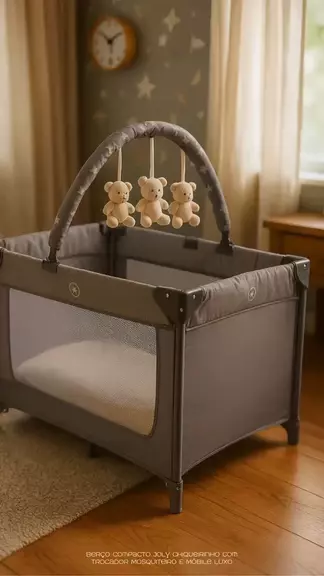 Berço Compacto Joly Chiqueirinho Com Trocador Mosquiteiro E Móbile Luxo#bercocompacto #chiqueirinho