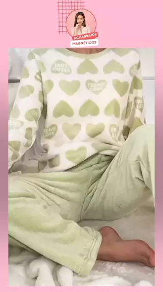 🔥Conjunto de pijama com estampa de coração, blusa de manga longa com gola redonda e calça com cintura elástica, roupa de dormir e loungewear feminino🔥 #pijama #Inverno #Temu #compras #comprasonline