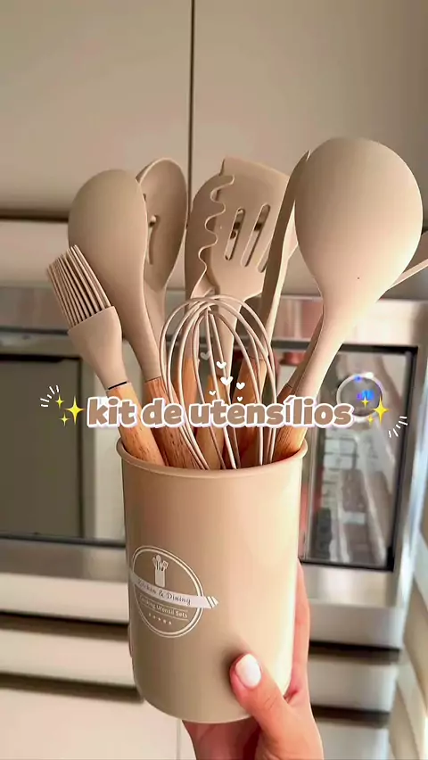 🍳 Sofisticação e praticidade na sua cozinha! O Kit de Utensílios em Silicone e Bambu 12 Peças traz resistência, design moderno e não risca suas panelas. 🌿✨ #CozinhaPerfeita #UtensíliosPremium #DecoraCozinha