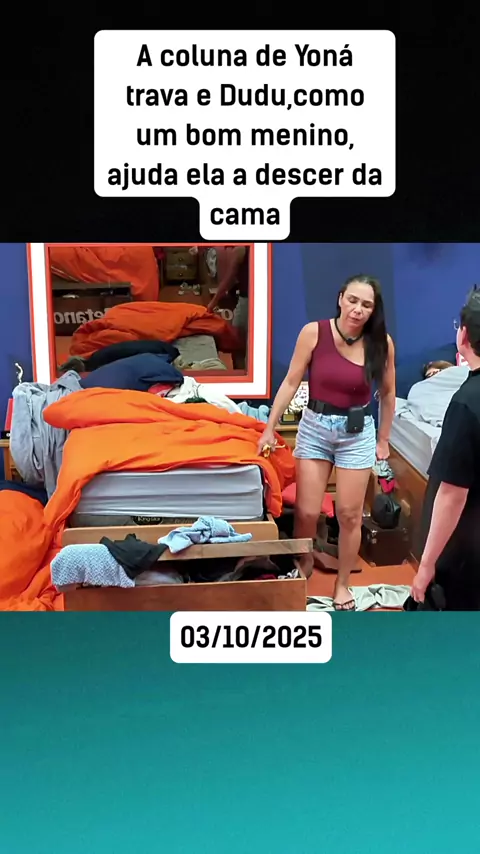 A coluna de Yoná trava e Dudu,como um bom menino, ajuda ela a descer da cama #AFazenda17 #fazendanokwai #entreterimento #afazenda