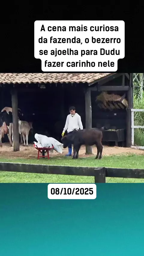 A cena mais curiosa da fazenda, o bezerro se ajoelha para Dudu fazer carinho nele #AFazenda17 #afazendarecord #fazendanokwai #afazenda