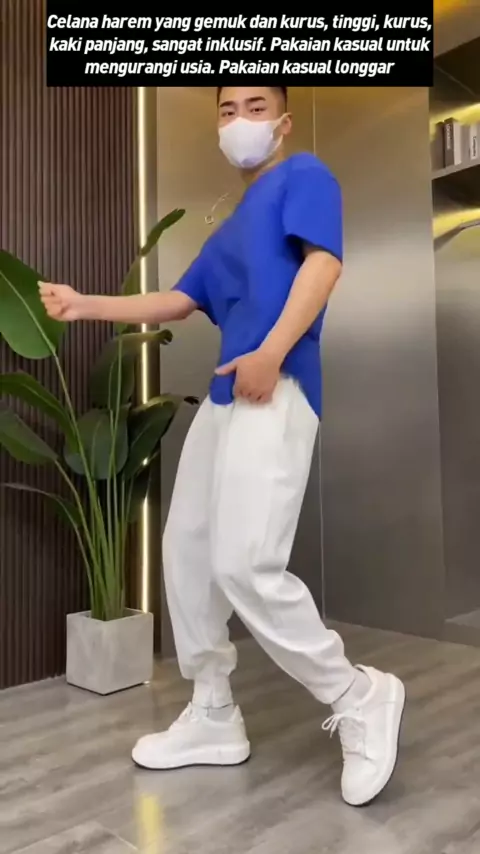 Celana harem yang gemuk dan kurus, tinggi, kurus, kaki panjang, sangat inklusif. Pakaian kasual untuk mengurangi usia. Pakaian kasual longgar