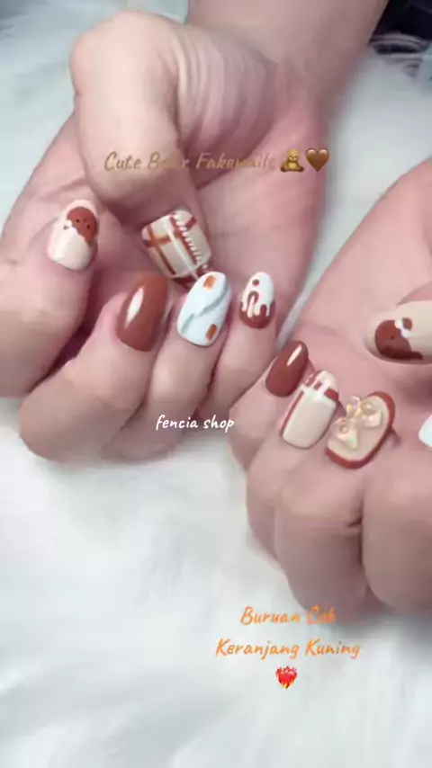 Cute Bear Custom Fakenails / Kuku Palsu Premium Reuseable Tahan Air #kukupalsu #kukupalsumurah #fakenail #fakenails #fakenailsmurah