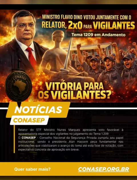 ⚖️ Relator do STF Ministro Nunes Marques e Flávio Dino tiveram voto favorável à aposentadoria especial de vigilantes no julgamento do Tema 1.209 O Conasep- Conselho Nacional da Segurança Privada cumpriu seu papel institucional, sendo o presidente Alan Hassem peça fundamental nas articulações que viabilizaram o avanço do tema até esta fase de votação, com expectativa concreta de aprovação em breve. https://www.instagram.com/p/DUcC6xCkeQz/?igsh=dzRrbXBza29yMHZm