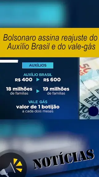 O valor do Auxílio Brasil vai subir dos atuais R$ 400 reais para R$ 600. O auxílio gás também terá aumento. Os beneficiados vão receber o valor médio de um botijão de gás a cada 2 meses -Julho de 2022 #social #noticias #auxiliobrasil #valegas #brasil