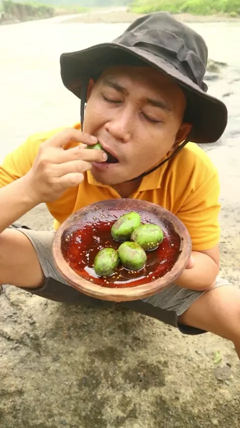 Rujak Kedondong Pinggir Sungai #YukRuralFood #mukbang #asmr #rujak