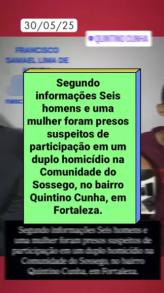 Segundo informações Seis homens e uma mulher foram presos suspeitos de participação em um duplo homicídio na Comunidade do Sossego, no bairro Quintino Cunha, em Fortaleza. #notícia #flagrante #ceara3xmaisforte #Prisão #cahcina
