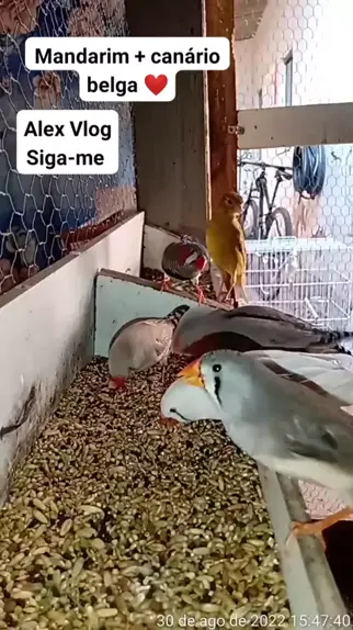 Mandarim + canário belga se alimentando / Compartilha família ❤️