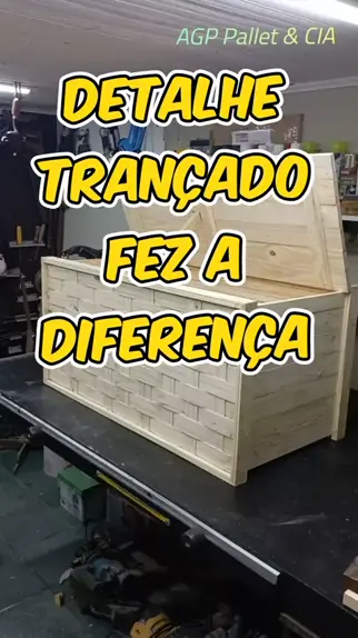 Veja como ficou o detalhe trançado com ripas de palete pinos no baú. Más