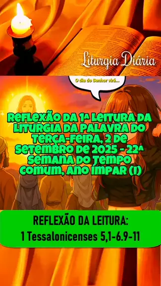 Jesus vai voltar, e agora? Reflexão da 1ª Leitura da Liturgia da Palavra do Terça-feira, 2 de Setembro de 2025 - 22ª Semana do Tempo Comum, Ano Ímpar (I) Primeira Leitura: 1 Tessalonicenses 5,1-6.9-11 #LiturgiaDiaria #Religiao #Reflexao #MensagemDeFe #Catolicos