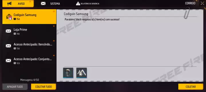 free fire Código da Samsung