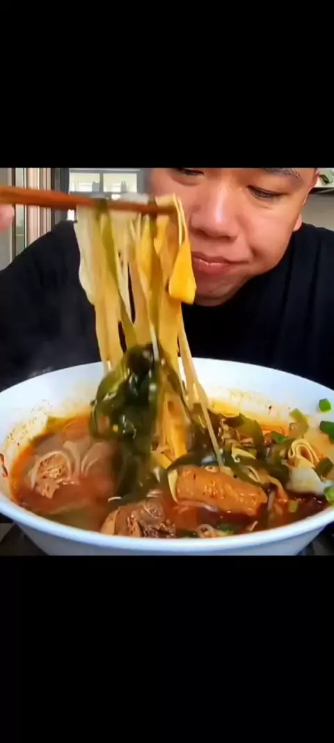 Comer macarrão notas para ver um homem de meia-idade pessoa feliz depois do trabalho