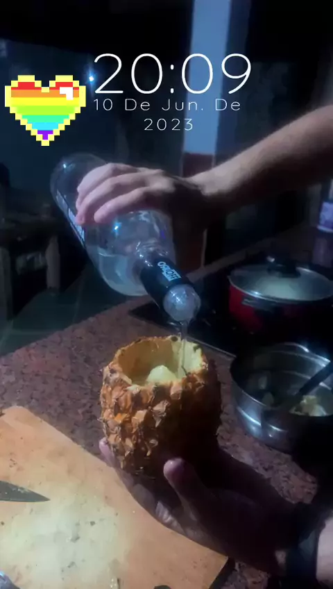 Drink de vodika com abacaxi, ficou muuuito bommm ππ»ππ»ππ»