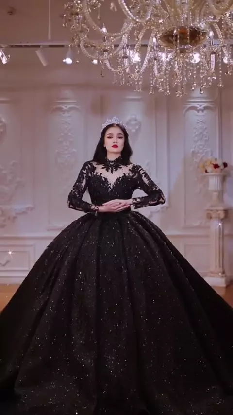 Will you wear a black wedding dress on your wedding@amandanoviasoffical#weddingdress#wedding#promdress#blackdress#blackweddingdress#robedemariee#weddingday#bridemakeup#partydress