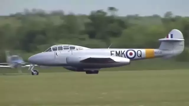 Gloster Meteor, esse avião foi o primeiro movido a jato de combate usado durante a Segunda Guerra Mundial pela Força Aérea Britânica, usado a primeira vez em 27 de Julho de 1947 e retirado de combates nos anos 80.
