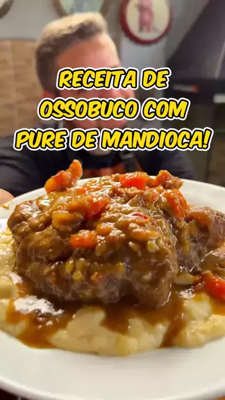 Ossobuco com purê de mandioca.(Receita)🔥🍖🔥 . 🧑🍳Ingredientes: 1,5kg de ossobuco. Uma cebola. Um tomate. Oito dentes de alho. Um pimentão amarelo. Um pimentão vermelho. Um talo de alho poro. Duas cenouras Sal a gosto. Cebolinha pra finalização. Farinha de trigo pra selar a carne.