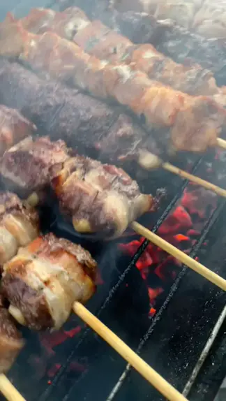 Espetinhos de qualidade!!! ❤️🍡🍡🔥😍 #KwaiComida #churrasquinho #carne #espeto #comida