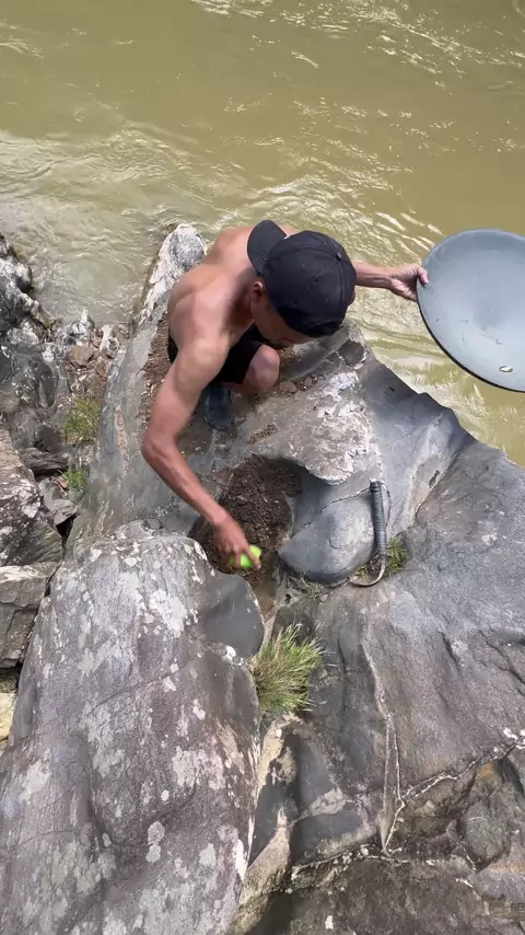so crazy!!! how can gold be trapped in a hole in a rock on the edge of a big scary river π₯Άπ±π±π± #fyp #video