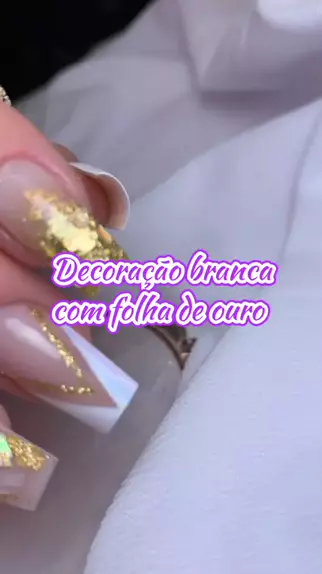 Decoração branca com folha de ouro #unhadecorada #alongamentodeunha #naildesigner #EstrelaDeFamília