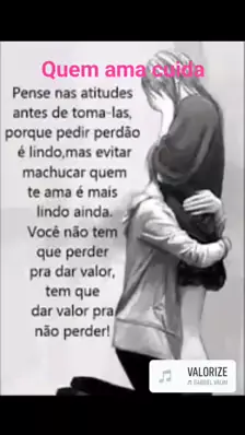 Se você ama de verdade quem está do seu lado valorize em quanto há tempo e oportunidade, porque a vida é passajeira,e no abrir e fechar de olhos a morte chega e leva embora a oportunidade de valorizar a pessoa amada,cuide respeite ame e não espere perder para aprender a dá valor.Deus te abençoe ❤️ More
