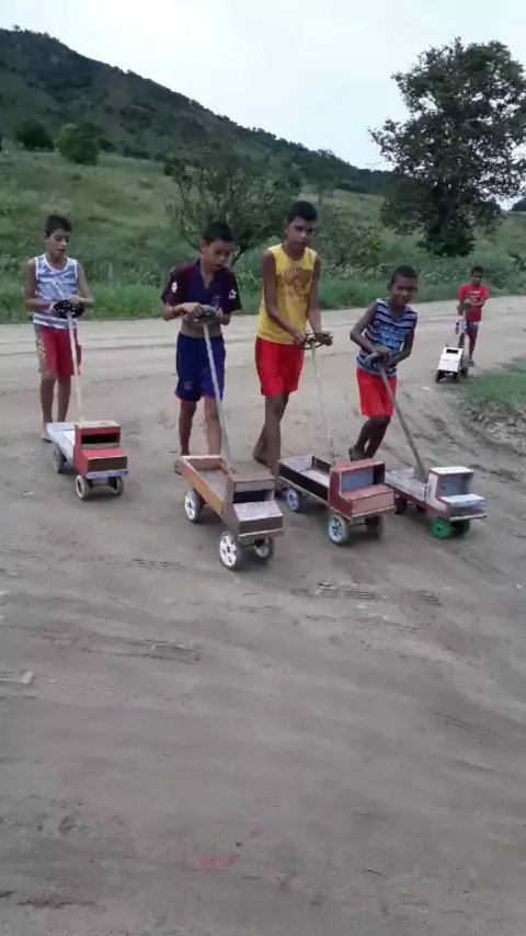 Como é bom ser criança,garotos de PALMIRA Ba se divertindo com seus carrinhos de madeira. Oh saudades de ser criança ❤️❤️
