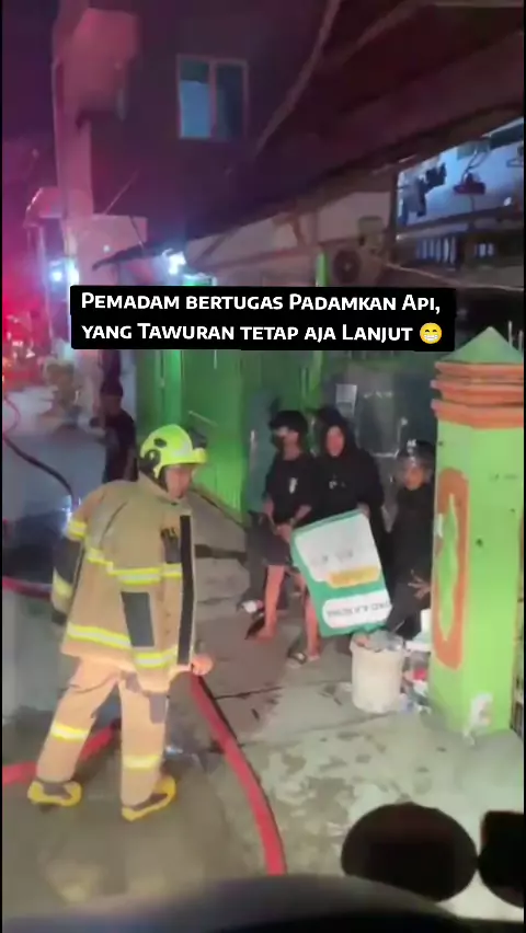 Pemadam bertugas Padamkan Api, yang Tawuran tetap aja lanjut ๐ , lokasi di kota makassar #kebakaran #damkar #baroanging