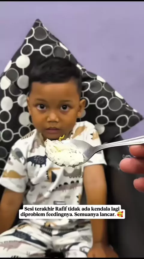 Rafif usia 5 tahun. Keluhannya takut makan nasi, sayur, lauk, dan buah buahan. Selain itu, Rafif juga takut minum obat dan vitamin. Alhamdulillah sekarang Rafif sudah semakin pinter setelah di terapi . ๐๐ค