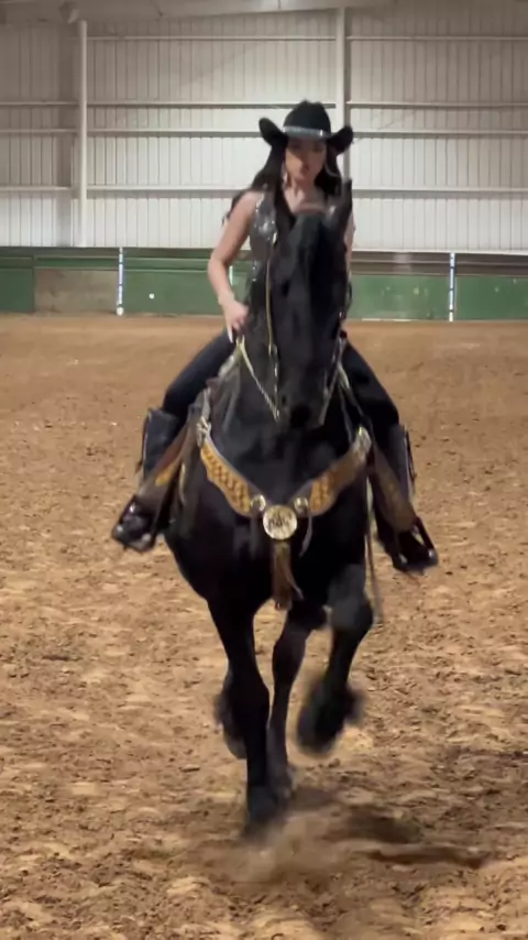 pasito del caballito π΄π€ #angelinavictoria #ranchomc #ranchomcfriesians #caballos #horses #vaquera #cowgirl #friesian #friesianhorse #caballosbailadores #caballos