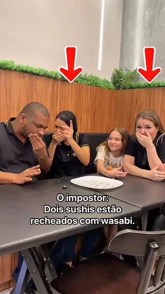 O impostor: Dois sushis estão recheados com wasabi. #impostor #descubra #Brincadeira #sushi
