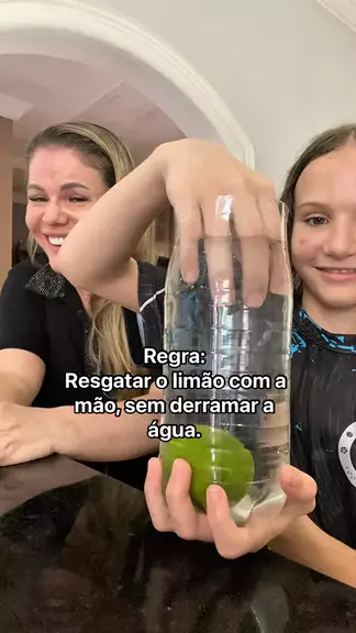 Regra: Resgatar o limão com a mão, sem derramar a água. #trend #limao #desafio #crianças #GalaxyAFazAbsurdos