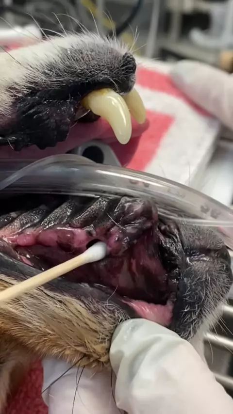 Occurs secondary to dental disease or loss of any maxillary (upper) teeth, most commonly the canine tooth. Clinical symptoms include sneezing, nasal discharge, and bad breath.#dentaldisease#badbreath#dog#