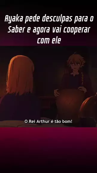 Ayaka pede desculpas para o Saber e agora vai cooperar com ele ele acha que tem que pedir desculpas mas ela disse que não precisa ela então só pede que quando for entrar alguma coisa perigosa avisa antes....