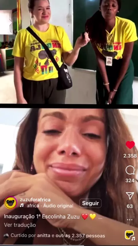 Anitta, chorando de felicidades após ver sua inauguração da escola dela na Angola pra ajudar crianças! ZUZU 😍