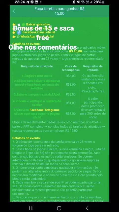 bonus de 15 e saca free corre meu bem