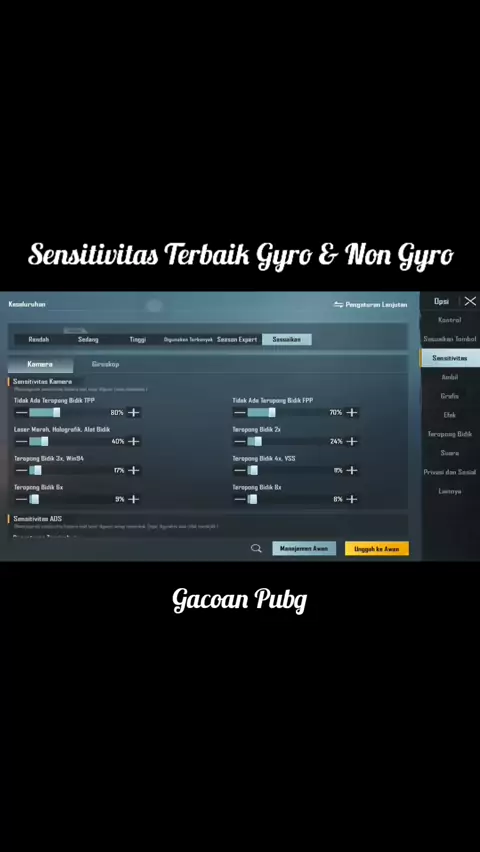 Sensitivitas terbaik gyro & non gyro. #pubg #pubgmobile #pubgindonesia #playerunknownbattleground #proplayer #hardgaming #sensitivitas #gyroscope